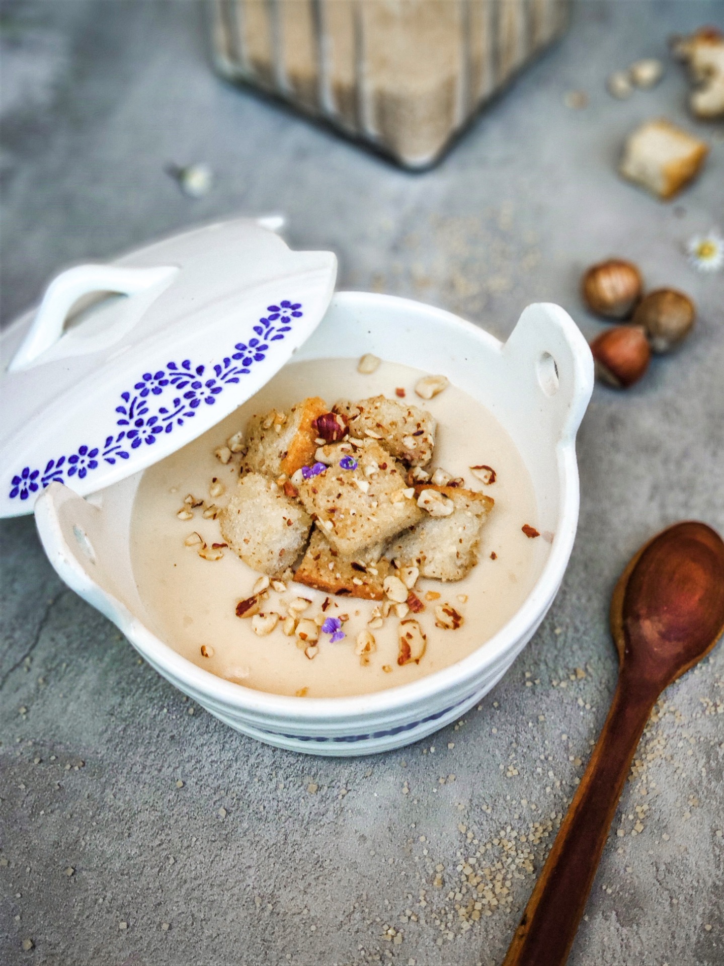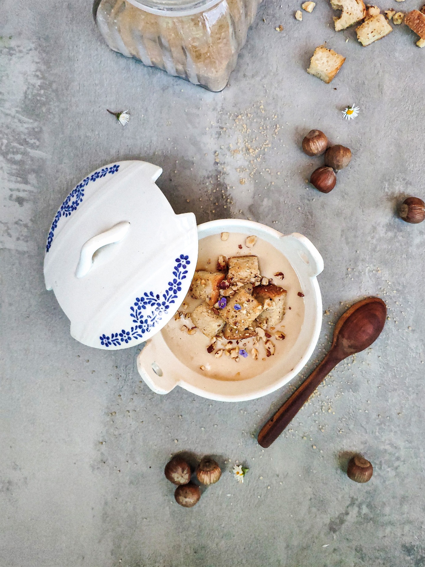 Mačanka- jedlo chudobných, ako hovorieva moja babka. Od nej mám aj tento recept a ona ho zas má od svojej mamy- mojej prababky, od ktorej mám aj tento netrúfam si tipovať koľko starý riad. Možno toto jedlo nie je žiadny gurmánsky, či výživový "zázrak", ale mne chuí, ako babkin úsmev :))) Táto verzia je trošku upgradnutá a samozrejme povegánštená.